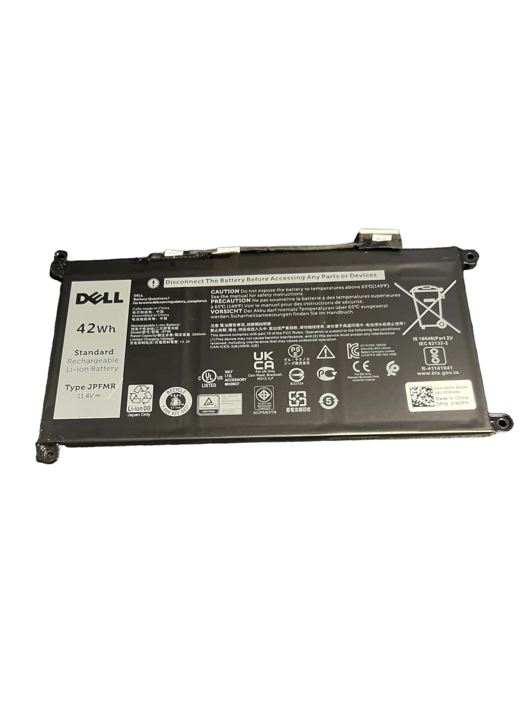 BATTERY (OEM PULL) FOR DELL CHROMEBOOK 11 3100 (1 USB-C VERSION) / 3100 / 3100 (TOUCH) / 3100 2-IN-1 (TOUCH) - JPFMR